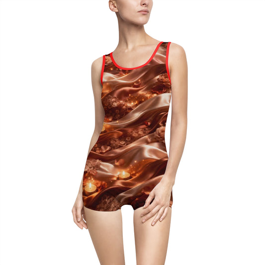 Ginger Flame Vintage Bronze Swimsuit — Retro All-Over-Print One-Piece